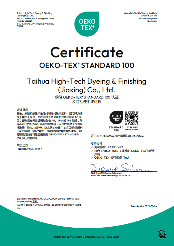 臺(tái)華新材 2023年再生產(chǎn)品Oeko-Tex Standard 100證書(shū)