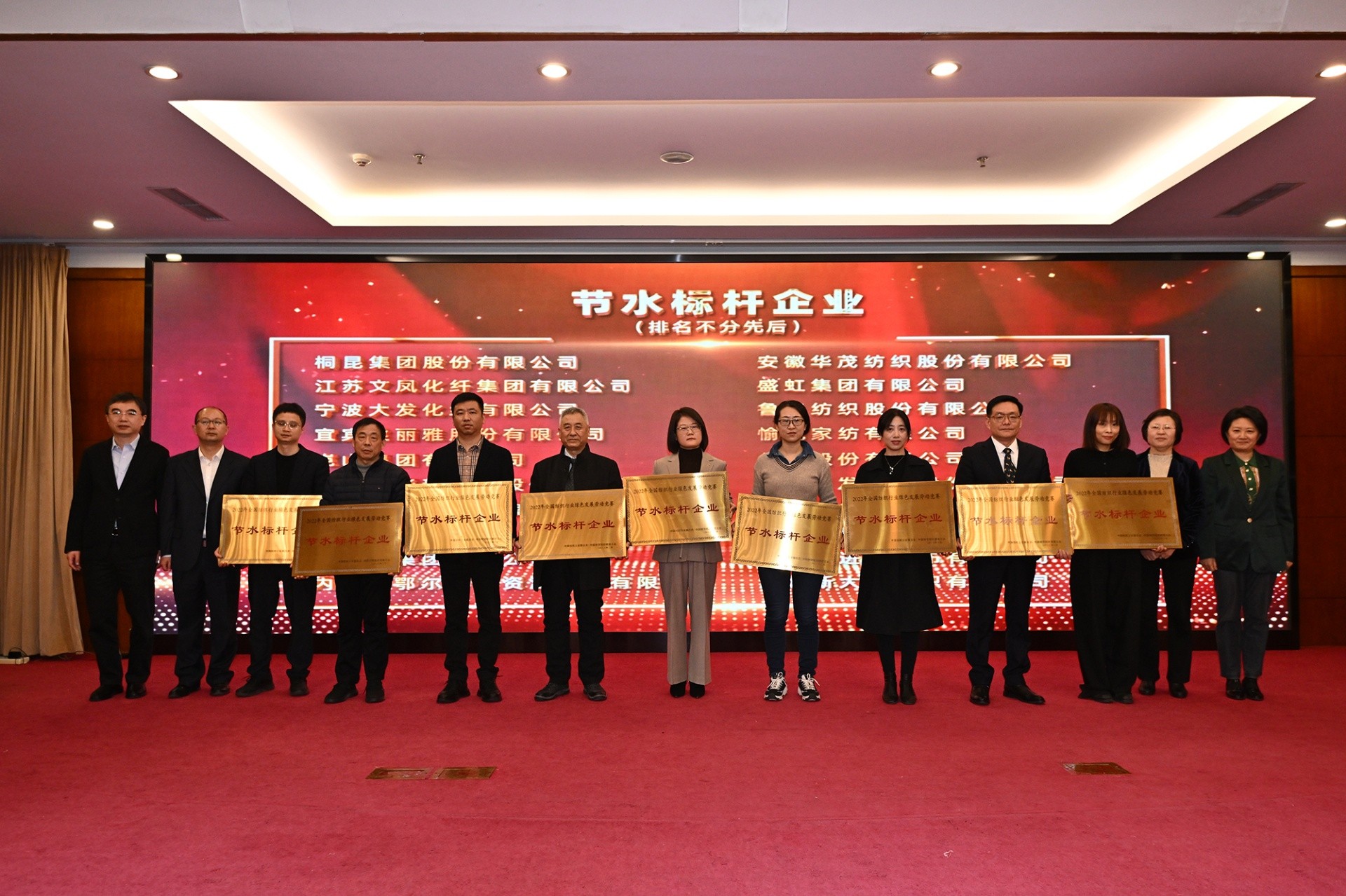 2月25日,2022年度全國(guó)紡織行業(yè)綠色發(fā)展勞動(dòng)競(jìng)賽總結(jié)會(huì)在北京舉行。會(huì)議發(fā)布了上年度綠色發(fā)展勞動(dòng)競(jìng)賽豐碩成果,并宣布2023年度全國(guó)紡織行業(yè)綠色發(fā)展勞動(dòng)競(jìng)賽活動(dòng)正式啟動(dòng)。臺(tái)華新材、高新染整在2022年全國(guó)紡織行業(yè)綠色發(fā)展勞動(dòng)競(jìng)賽中榮獲節(jié)水標(biāo)桿企業(yè)。