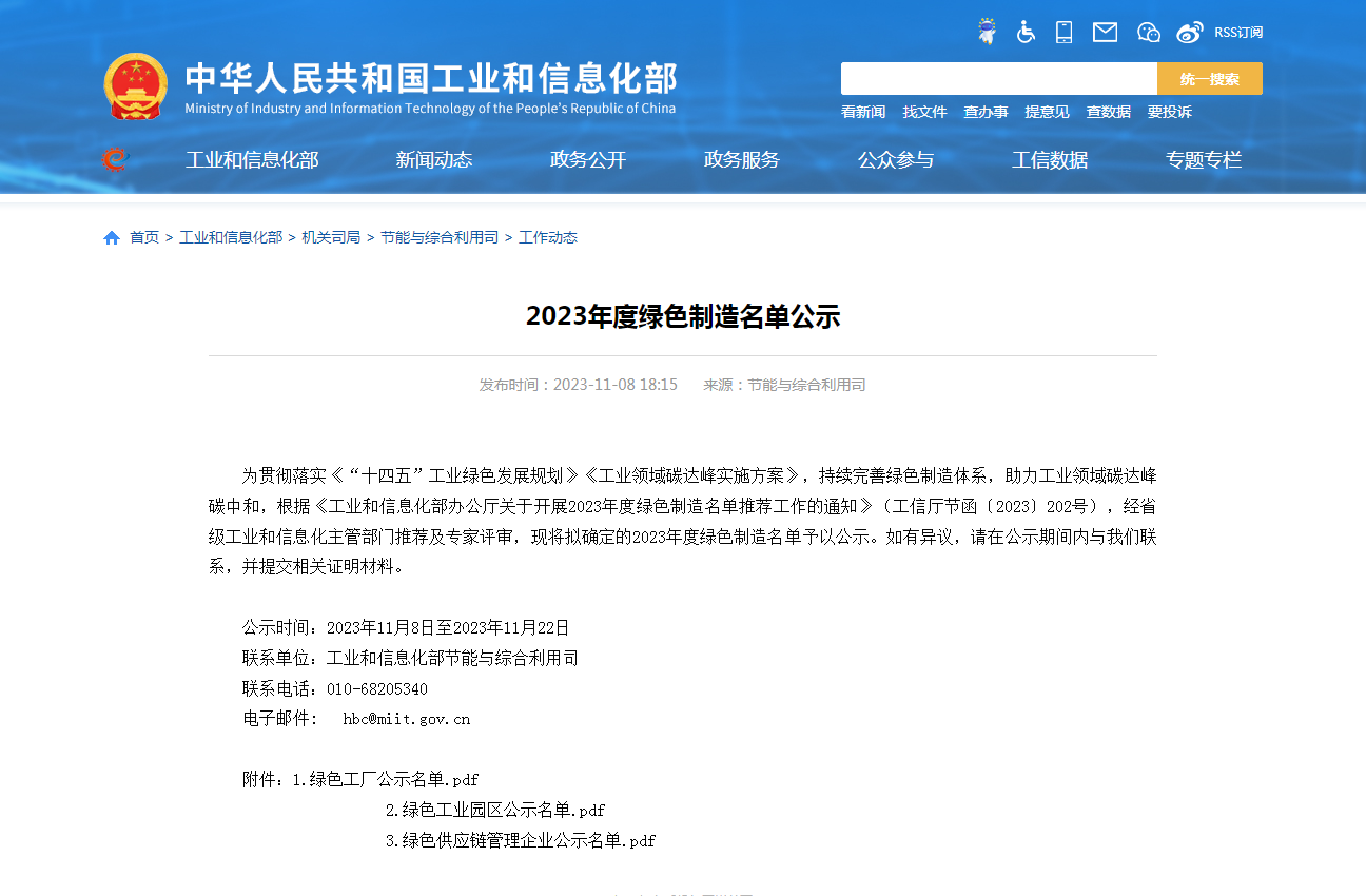 11月8日,工業(yè)和信息化部公示了2023年度綠色供應鏈管理企業(yè)名單,浙江臺華新材料股份有限公司位列榜中。